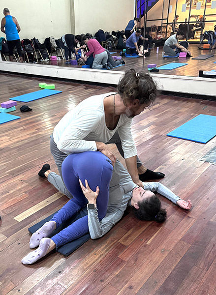 Las clases combinan trabajo individual, en pareja o en grupo. El otro no es solo apoyo físico: mirarlo, sentirlo, nos conecta con nuestra propia percepción. Aquí no se trata solo de estirar. Se trabaja la flexibilidad, la fuerza y la elongación como un todo, con conciencia, respiración y emociones que se transforman en movimiento.